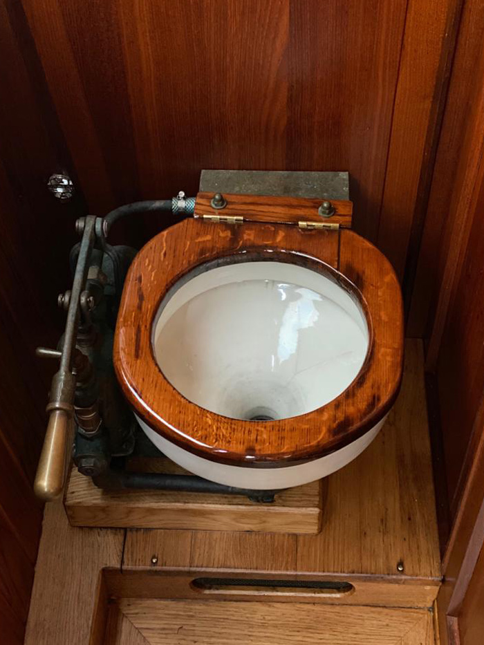 De restauratie van De Eeuw heeft vanaf 1999 een aantal jaren in beslag genomen. De bijna 100 jaar oude romp is volledig gerestaureerd en verduurzaamd, de kajuit is verwijderd en vervangen door de historische salon met een dak dat is beslagen met koper. Niet authentiek maar uniek in zijn soort! In de salon staat een prachtige salontafel van Piet Hein Eek, samengesteld van “afvalhout” van de orginele salondeuren uit 1905. Van origine was er geen toilet aan boord. Wij vonden bij een restaurateur een toilet uit 1920, gefabriceerd bij A.B. Stands & Sons in New York. Dit pronkstuk, voorzien van een bronzen pomp met elandshuiden pakkingen, prijkt sinds 2005 bij ons aan boord, net als de koperen mengkraan uit 1950. De schippers vertellen u graag meer over de bijzondere historie van De Eeuw.